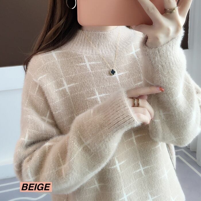 トップス レディース セーター ショート丈 長袖 柄 春 秋 冬 セミフレア かわいい 大人可愛い きれいめ シンプル カジュアル 大人 上品 おしゃれ お洒落 レトロ 大人女子 こなれ感 ラフ ラブリー キュート ルーズ 個性的 とろみ感 クルーネック 袖あり 青 ブルー ベージュ ピンク くすみカラー S M L XL ワンサイズ 20代 30代 学生 デート お出かけ 女子会 休日 着回し 普段使い 韓国系 ファッション コーデ スタイル あったか モテ 送料無料 トレンド 流行 インスタ映え | Rena 韓国ファッション レディースアパレル