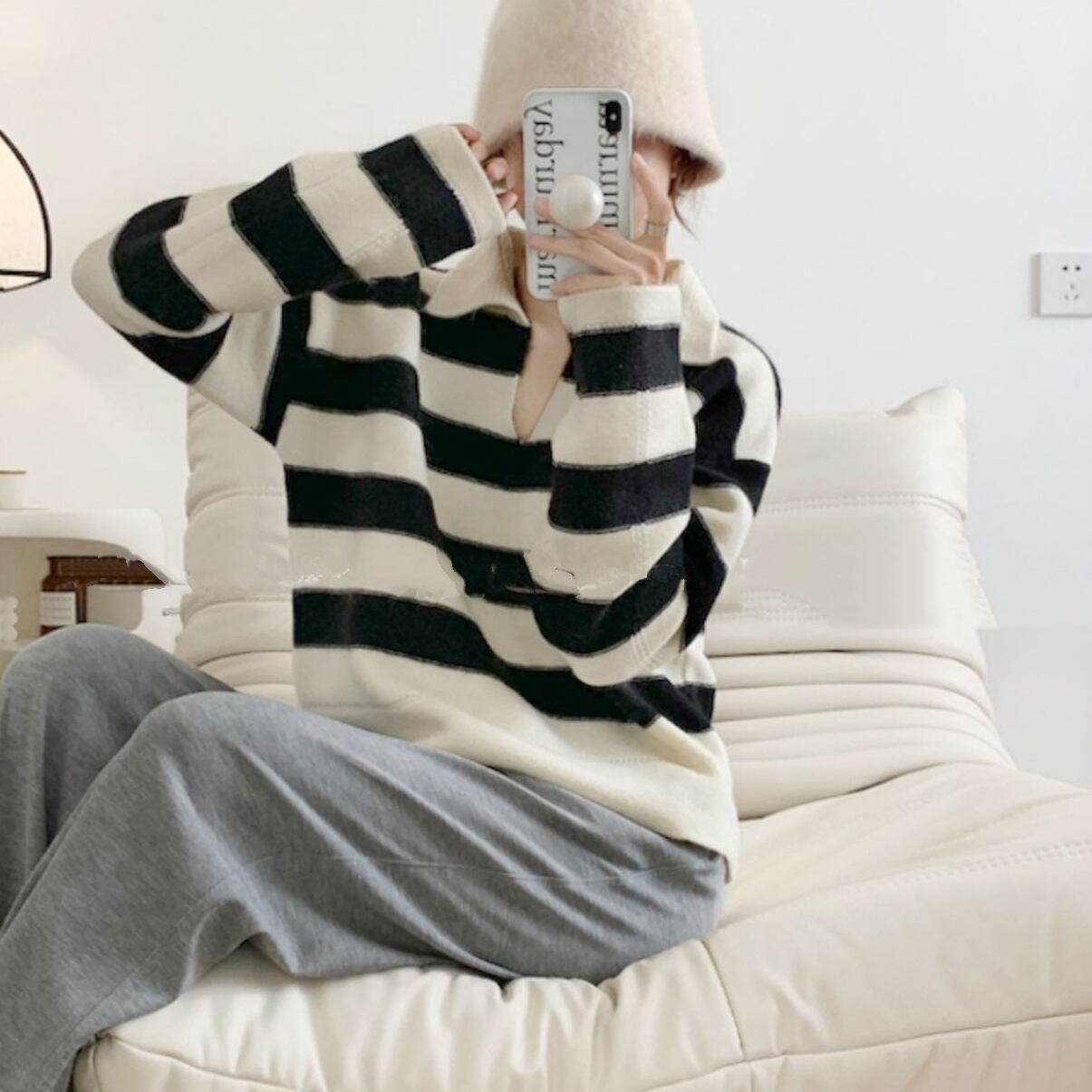 トップス レディース ニット セーター ショート丈 長袖 ボーダー 春 秋 冬 かわいい 大人可愛い きれいめ シンプル カジュアル 大人 上品 おしゃれ お洒落 レトロ 大人女子 ラフ ラブリー キュート 個性的 セクシー Vネック ショート 袖あり 黒 ブラック くすみカラー 大人カラー ワンサイズ 20代 30代 オフィス 通勤 学生 通学 デート お出かけ 公園デビュー 女子会 休日 着回し 普段使い コーデ スタイル 楽ちん あったか モテ 送料無料 トレンド 流行 インスタ映え | Rena 韓国ファッション レディースアパレル