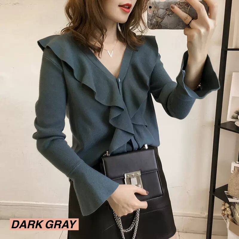 トップス レディース ニット ニットスカート ショート丈 長袖 無地 春 秋 冬 セミフレア フリル かわいい 大人可愛い きれいめ シンプル カジュアル 大人 おしゃれ お洒落 レトロ 大人可愛い 大人女子 キュート 個性的 とろみ感 Vネック 袖あり グレー 黄色 オレンジ くすみカラー 大人カラー アプリコット XL 2XL 3XL 4XL 20代 30代 学生 デート お出かけ 女子会 休日 アウトドア 旅行 着回し 普段使い 韓国 韓国系 あったか モテ 送料無料 トレンド 流行 インスタ映え | Rena 韓国ファッション レディースアパレル