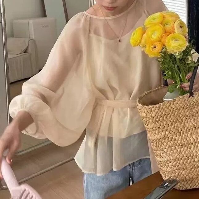 BIGなパフスリーブがキュートなシースルーブラウス。