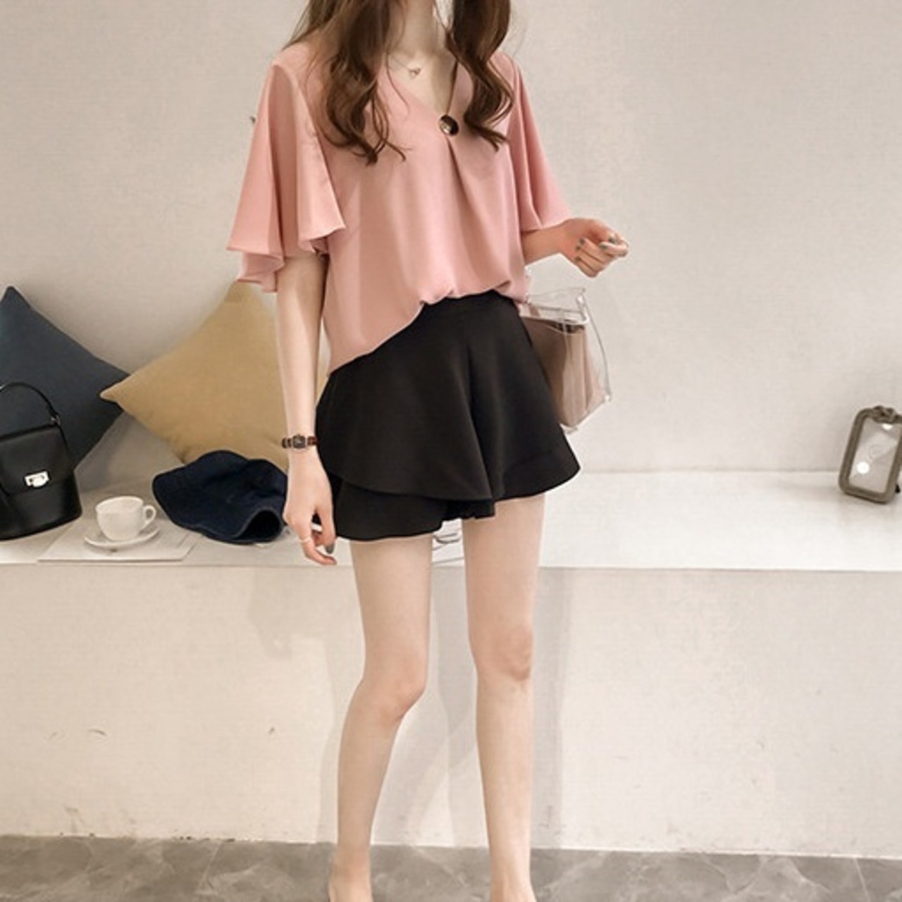 トップス レディース ブラウス ショート丈 長袖 無地 春 秋 冬 セミフレア かわいい 大人可愛い きれいめ シンプル カジュアル 大人 おしゃれ お洒落 レトロ 大人可愛い 大人女子 ラフ キュート ルーズ 個性的 とろみ感 Vネック 袖あり 赤 レッド 茶色 ブラウン ピンク くすみカラー M L XL 2XL 3XL 4XL 20代 30代 学生 デート お出かけ 女子会 休日 アウトドア 旅行 着回し 普段使い 韓国 韓国系 オルチャン スタイル モテ 送料無料 トレンド 流行 インスタ映え | Rena 韓国ファッション レディースアパレル