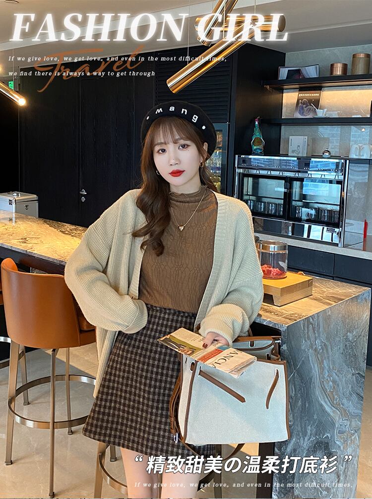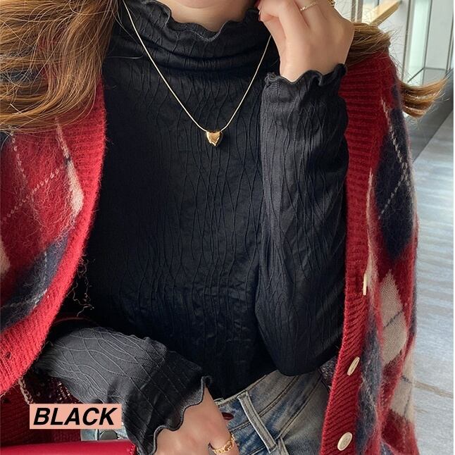 シンプルながら華やかさが魅力のハイネックトップス。