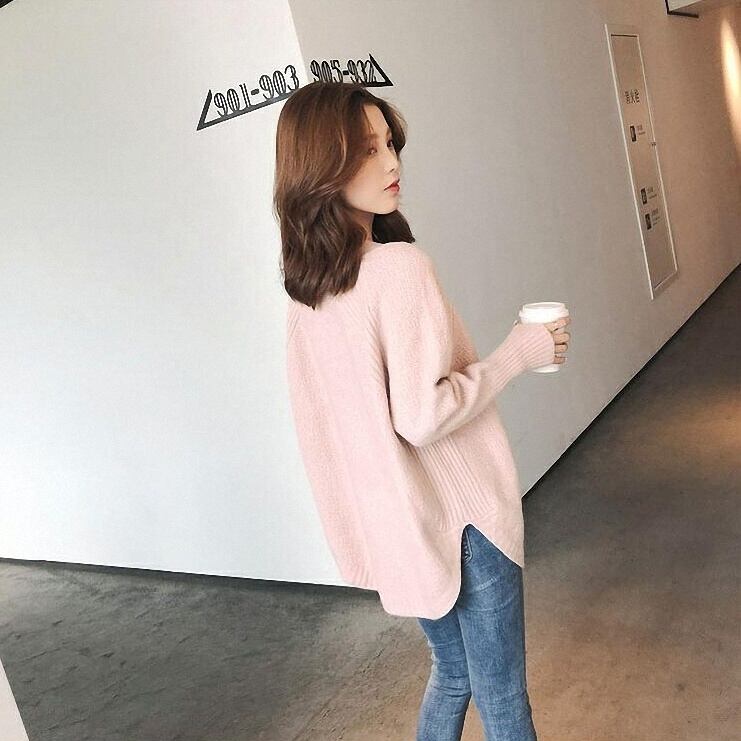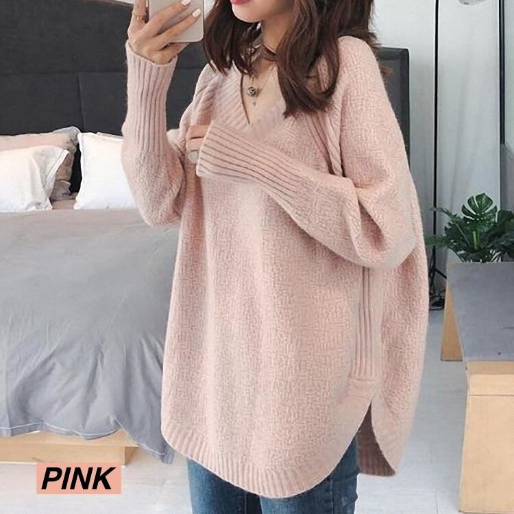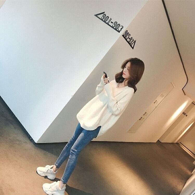 上品なVネックが女性らしい魅力を引き立てる、シンプルでおしゃれなセーターニット。
