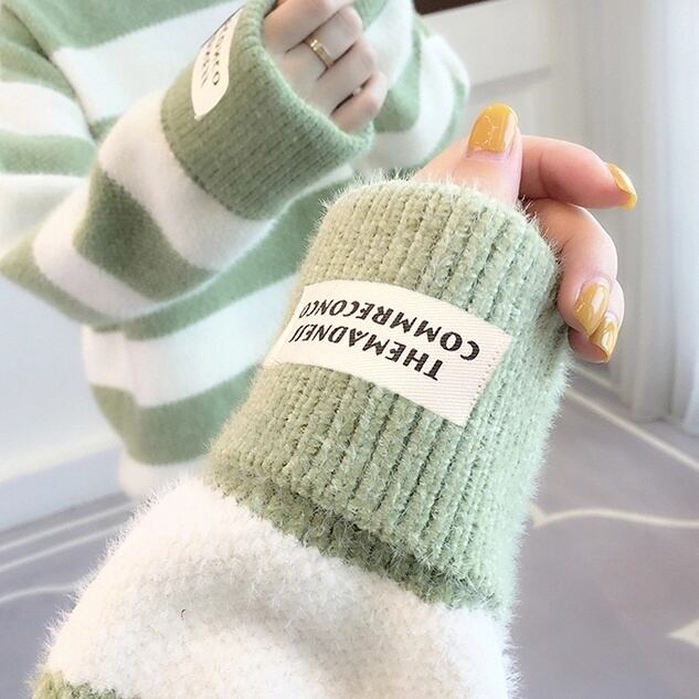 楽ちんな着心地で、人気のボーダーデザインが特徴のふわふわニットトップス。