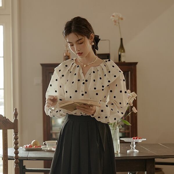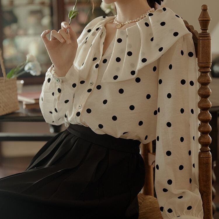 表情が豊かになるドット柄ブラウスです。