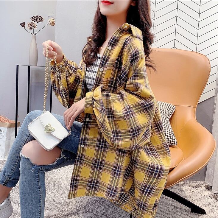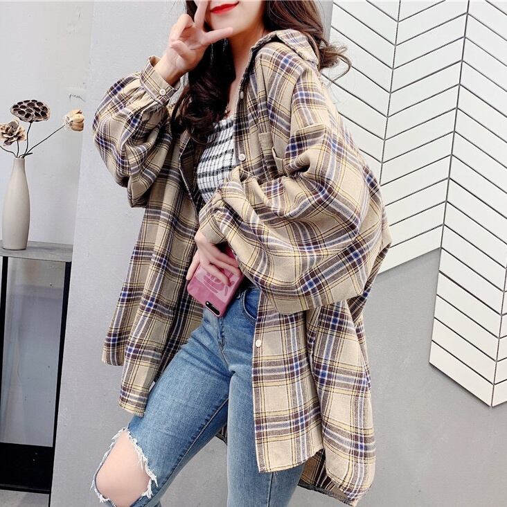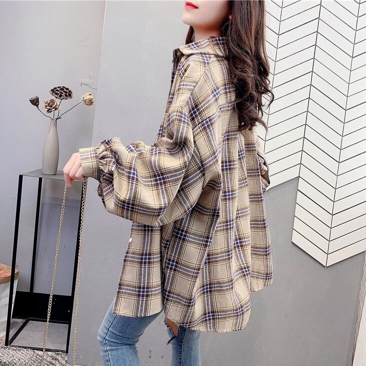 トップス レディース シャツ ロング丈 長袖 チェック 春 夏 秋 冬 セミフレア かわいい 大人可愛い きれいめ シンプル カジュアル 大人 上品 おしゃれ お洒落 レトロ アジアン 大人可愛い 大人女子 こなれ感 個性的 セクシー とろみ感 抜け感 Vネック ロング 袖あり 赤 レッド 緑 グリーン カーキ イエロー ピンク 大人カラー S M L XL 2XL 20代 30代 デート お出かけ 女子会 休日 オールシーズン コーデ スタイル モテ 送料無料 トレンド 流行 インスタ映え | Rena 韓国ファッション レディースアパレル