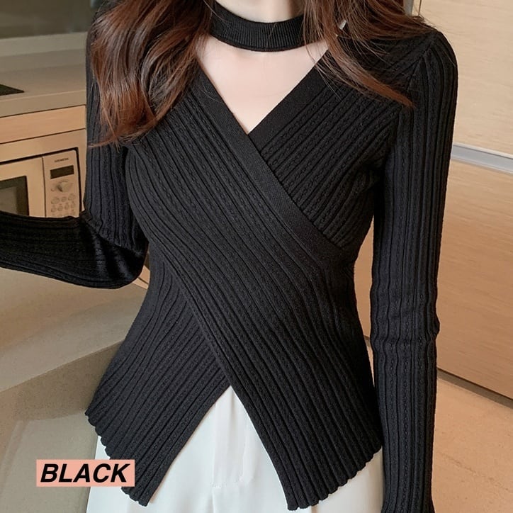 Vネックデコルテが美しく見えるニットトップスです。