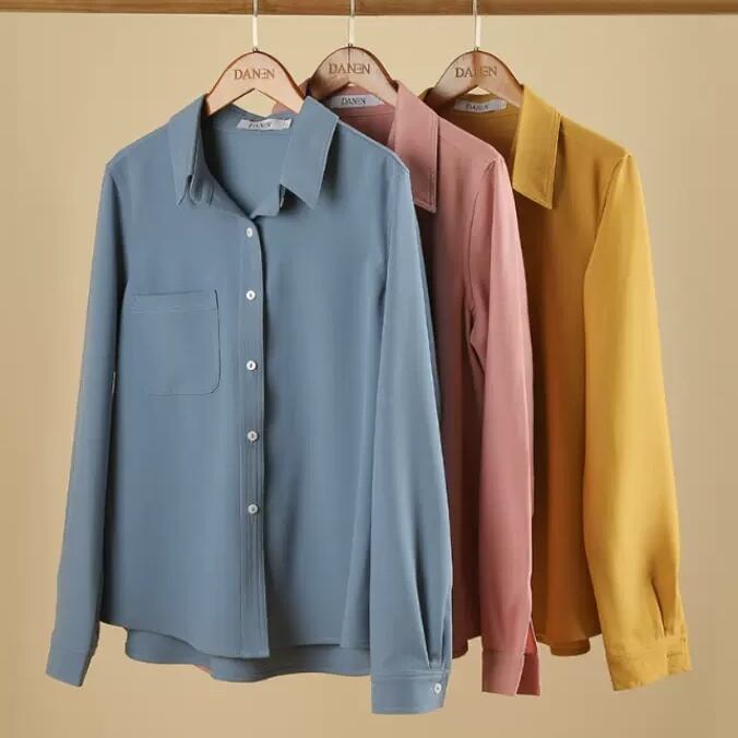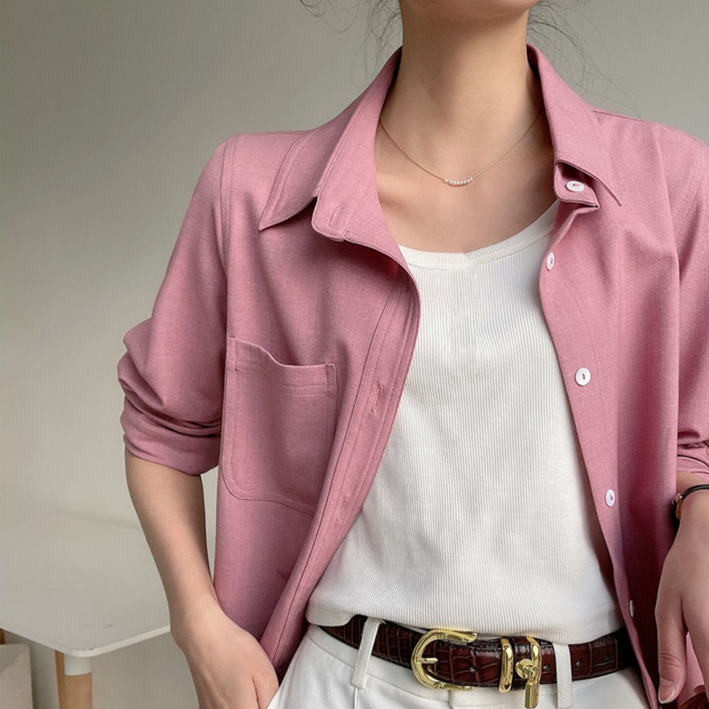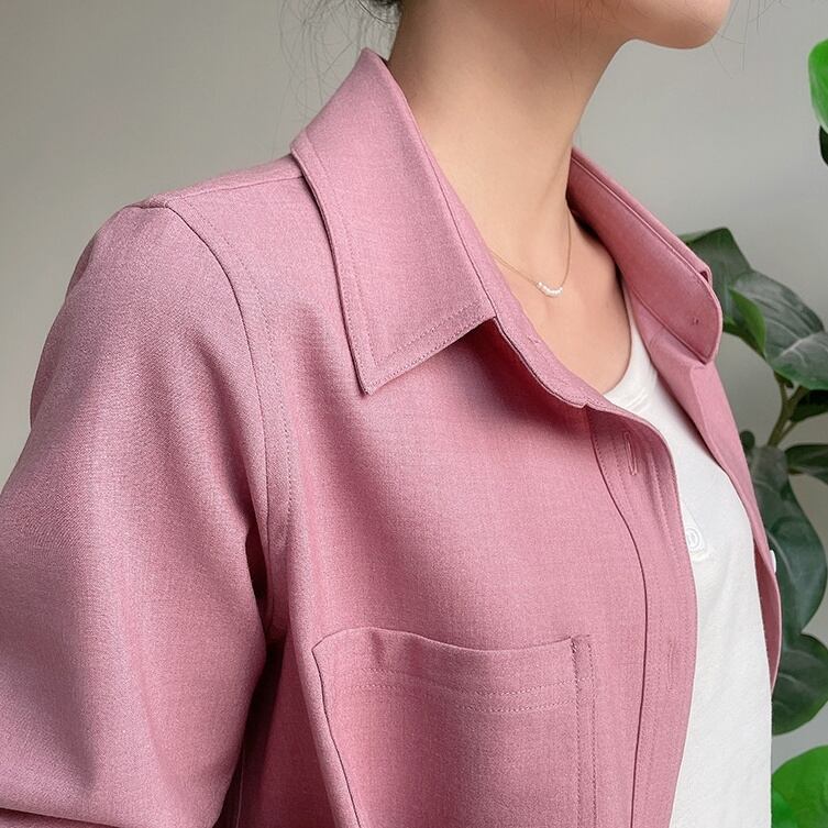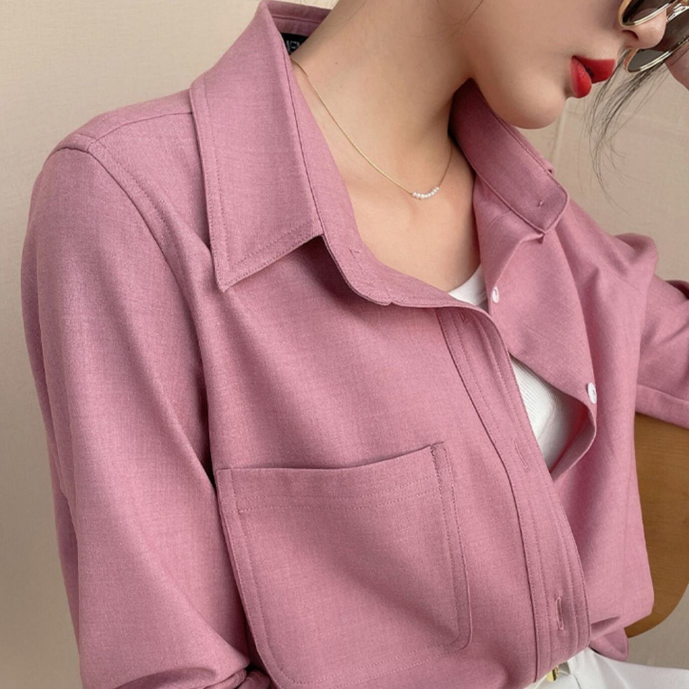 トップス レディース シャツ ショート丈 長袖 無地 春 秋 冬 セミフレア かわいい 大人可愛い きれいめ シンプル カジュアル 大人 上品 おしゃれ お洒落 レトロ 大人可愛い 大人女子 こなれ感 個性的 セクシー とろみ感 抜け感 Vネック ショート 袖あり 青 ブルー イエロー ピンク くすみカラー S M L 20代 30代 デート お出かけ 公園デビュー 女子会 休日 着回し 普段使い オルチャン ファッション コーデ スタイル モテ プチプラ 送料無料 トレンド 流行 インスタ映え | Rena 韓国ファッション レディースアパレル