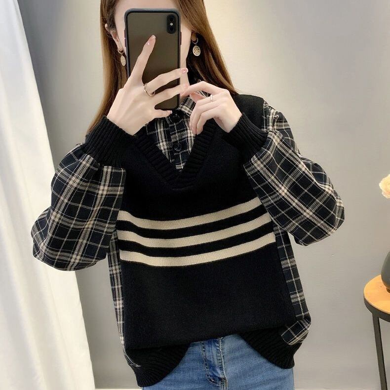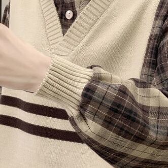 きちんと感とおしゃれさが融合したフェイクツーピースブラウス。
