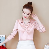 華やかな光沢が魅力の長袖ブラウス。