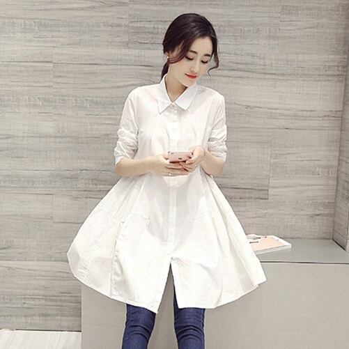 トップス レディース シャツ ロング丈 長袖 無地 春 秋 冬 セミフレア かわいい 大人可愛い きれいめ シンプル カジュアル 大人 上品 おしゃれ お洒落 レトロ エキゾチック 大人可愛い 大人女子 こなれ感 個性的 セクシー 存在感 とろみ感 抜け感 Vネック ロング 袖あり 白 ホワイト 黒 ブラック くすみカラー S M L XL 2XL 3XL 20代 30代 デート お出かけ 女子会 休日 着回し 普段使い オルチャン コーデ スタイル モテ 送料無料 トレンド 流行 インスタ映え | Rena 韓国ファッション レディースアパレル