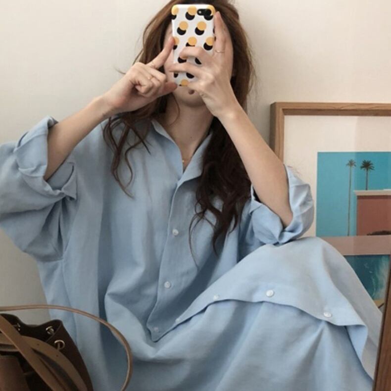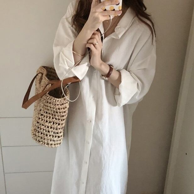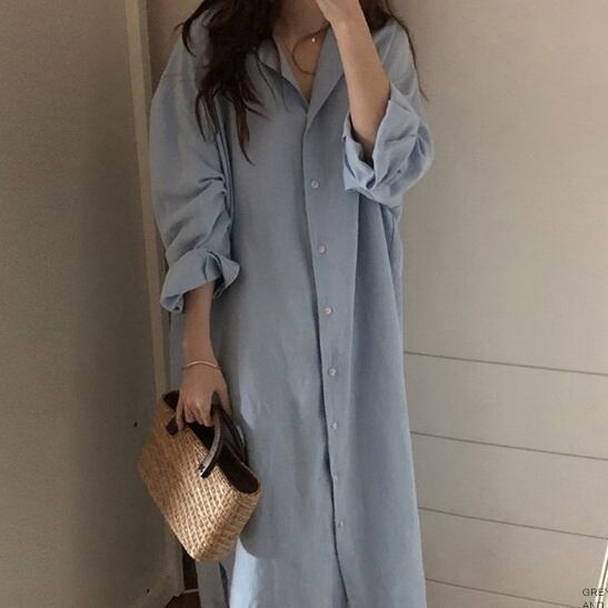 トップス レディース シャツ カーディガン ミディアム丈 長袖 無地 春 秋 冬 セミフレア かわいい 大人可愛い きれいめ シンプル カジュアル 大人 上品 おしゃれ お洒落 レトロ エキゾチック 大人可愛い 大人女子 こなれ感 個性的 セクシー 存在感 とろみ感 抜け感 Vネック マキシ 袖あり 白 ホワイト 青 ブルー ベージュ くすみカラー S M L XL 2XL 20代 30代 デート お出かけ 女子会 休日 着回し 普段使い コーデ スタイル モテ 送料無料 トレンド 流行 インスタ映え | Rena 韓国ファッション レディースアパレル