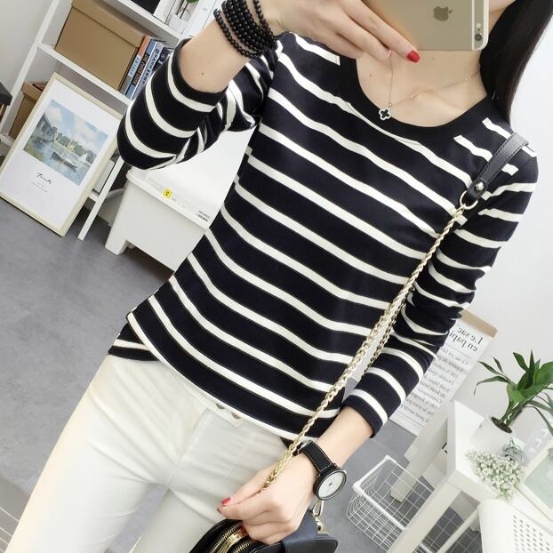 トップス レディース カットソー ショート丈 長袖 ボーダー 春 秋 冬 セミフレア かわいい 大人可愛い きれいめ シンプル カジュアル 大人 上品 おしゃれ お洒落 レトロ エキゾチック 大人可愛い 大人女子 こなれ感 個性的 セクシー 存在感 とろみ感 抜け感 Uネック 袖あり 白 ホワイト 黒 ブラック くすみカラー ベイクドカラー M L XL 2XL 3XL 20代 30代 デート お出かけ 女子会 休日 着回し 普段使い コーデ スタイル モテ 送料無料 トレンド 流行 インスタ映え | Rena 韓国ファッション レディースアパレル