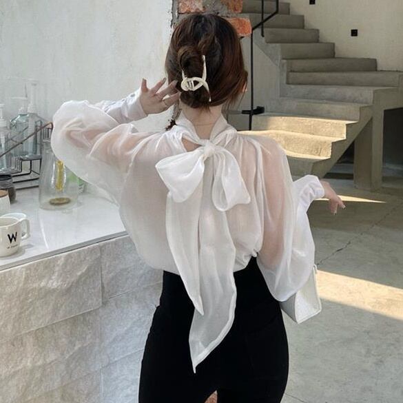 トップス レディース ブラウス ショート丈 長袖 無地 春 秋 冬 リボン かわいい 大人可愛い きれいめ シンプル カジュアル 大人 上品 おしゃれ お洒落 レトロ エキゾチック 大人可愛い 大人女子 こなれ感 個性的 セクシー 存在感 とろみ感 抜け感 ショート 袖なし 白 ホワイト 黒 ブラック くすみカラー ベイクドカラー ワンサイズ 20代 30代 デート お出かけ 女子会 休日 リゾート 旅行 海 着回し 普段使い コーデ スタイル モテ プチプラ 送料無料 トレンド 流行 インスタ映え