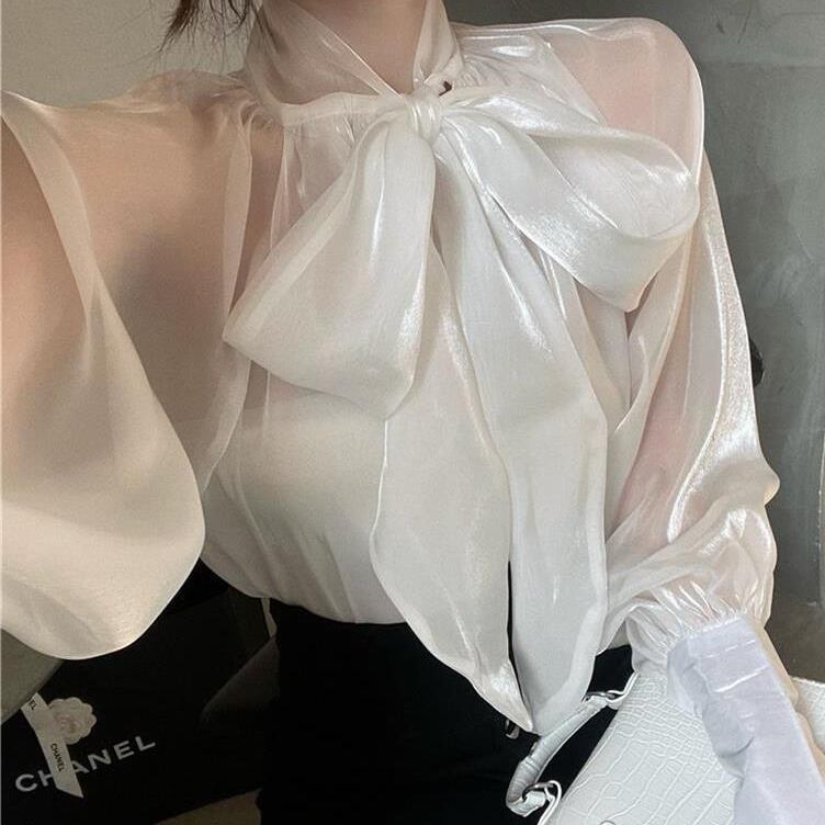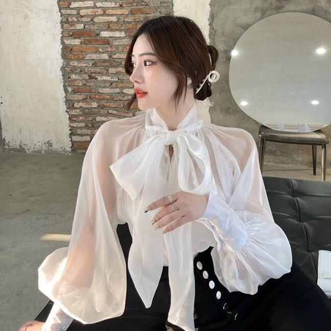 トップス レディース ブラウス ショート丈 長袖 無地 春 秋 冬 リボン かわいい 大人可愛い きれいめ シンプル カジュアル 大人 上品 おしゃれ お洒落 レトロ エキゾチック 大人可愛い 大人女子 こなれ感 個性的 セクシー 存在感 とろみ感 抜け感 ショート 袖なし 白 ホワイト 黒 ブラック くすみカラー ベイクドカラー ワンサイズ 20代 30代 デート お出かけ 女子会 休日 リゾート 旅行 海 着回し 普段使い コーデ スタイル モテ プチプラ 送料無料 トレンド 流行 インスタ映え | Rena 韓国ファッション レディースアパレル