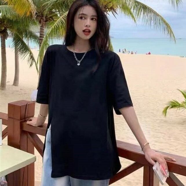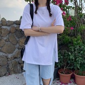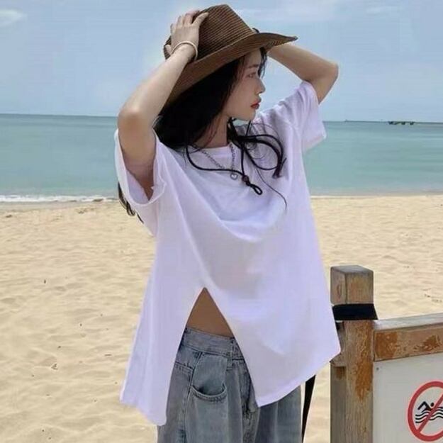 スリット入りの半袖 T シャツは、シンプルなデザインながらも洗練されたスタイリングが可能で。