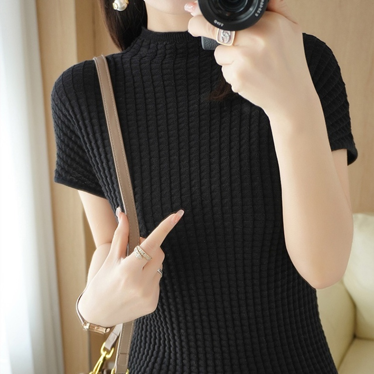 爽やかな無地デザインで春夏のトレンドコーディネートにぴったり。