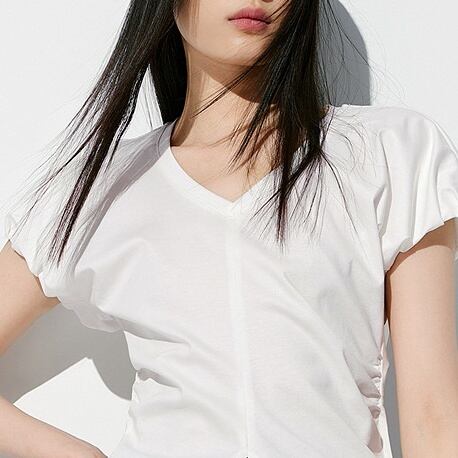 Vネックのカットがデコルテを美しく見せ、涼しげな着心地がこれからの季節に最適です。