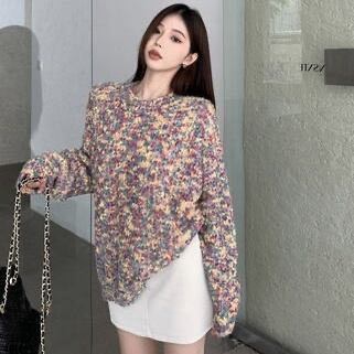 トップス レディース セーター ロング丈 長袖 柄 春 秋 冬 セミフレア かわいい 大人可愛い きれいめ シンプル カジュアル 大人 上品 おしゃれ お洒落 レトロ 大人可愛い 大人女子 こなれ感 キュート ガーリー 個性的 セクシー エレガント モダン 存在感 とろみ感 Uネック ロング 袖あり くすみカラー S M L XL 20代 30代 学生 通学 デート お出かけ 女子会 休日 着回し 普段使い 韓国系 オルチャン ファッション コーデ 楽ちん モテ 送料無料 トレンド 流行 インスタ映え | Rena 韓国ファッション レディースアパレル