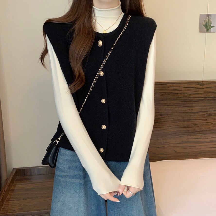 女性用の重ねニットベスト、秋冬にぴったりな一枚。暖かく、柔らかな素材で仕上げたこのベストは、オフィスシーンからデートまで幅広く活躍します。シンプルなデザインながらも、重ね着のレイヤードスタイルがおしゃれな印象を演出。寒い冬でも暖かく過ごせる一着です。 厳選した素材と職人の技が織りなすこの一枚は、上質な着心地をお約束します。どんなコーディネートにもマッチする優れたベーシックアイテムとして、是非取り入れてみてください。