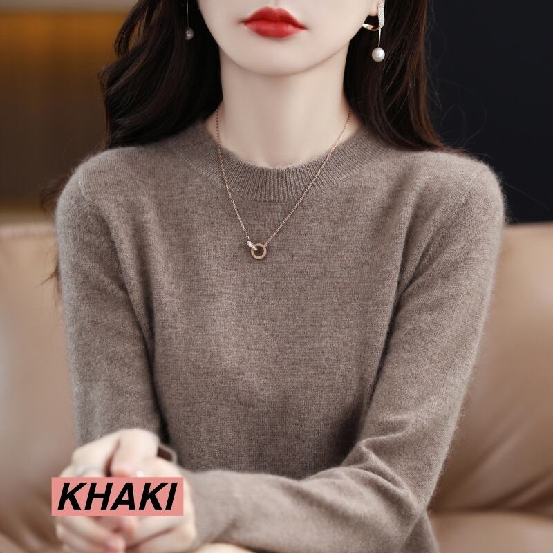このラウンドネックニットは、着心地の良さとあたたかさが魅力の一着。