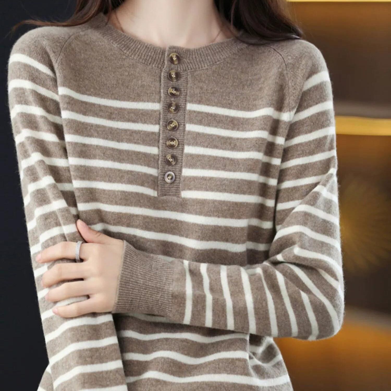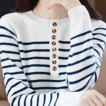トップス レディース ニット スゥエットパンツ ショート丈 長袖 ボーダー 春 秋 冬 セミフレア かわいい 大人可愛い きれいめ シンプル カジュアル 大人 上品 おしゃれ お洒落 レトロ 大人可愛い 大人女子 こなれ感 個性的 セクシー モダン 存在感 とろみ感 Uネック 白 ホワイト 黒 ブラック 茶色 ブラウン 灰色 グレー ベージュ S M L XL 20代 30代 学生 通学 デート お出かけ 女子会 休日 着回し 普段使い スタイル 楽ちん モテ 送料無料 トレンド 流行 インスタ映え | Rena 韓国ファッション レディースアパレル