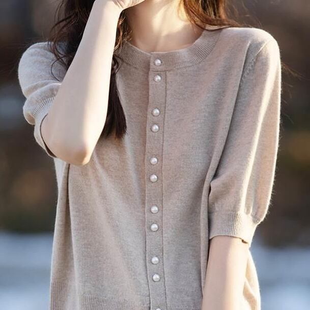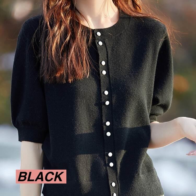 トップス レディース ニット カーディガン ショート丈 五分袖 無地 春 秋 冬 セミフレア かわいい 大人可愛い きれいめ シンプル カジュアル 大人 上品 おしゃれ お洒落 レトロ 大人可愛い 大人女子 こなれ感 キュート ガーリー 個性的 セクシー モダン 存在感 とろみ感 Uネック 白 ホワイト 黒 ブラック グレー ベージュ カーキ M L XL 2XL 20代 30代 学生 通学 デート お出かけ 女子会 休日 着回し 普段使い スタイル 楽ちん モテ 送料無料 トレンド 流行 インスタ映え | Rena 韓国ファッション レディースアパレル