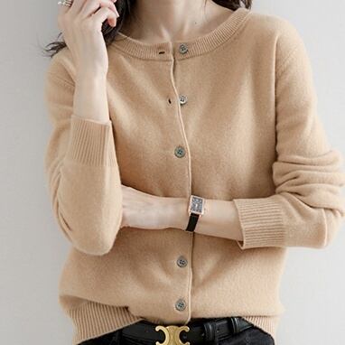 シンプルで大人っぽい印象のカーディガンは、どんなコーデにもぴったり。